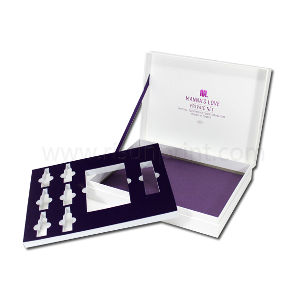 Our cosmetic boxes are well designed to cover the latest in form, fit and function. Take this box for example, we customized the inner tray for the bottles, and give the EVA a coat of Purple flannel to show a high standard of the poroducts. Our Custom Demand Paper Cosmetic Box Wholesale Cosmetic Packaging Supplies , can change the color and size according to your products, please not hesitated to contact us.